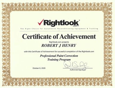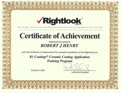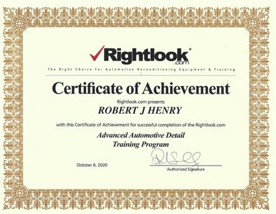 More to tell you about us coming soon! We are Rightlook® Certified through "The Right Choice for Automotive Reconditioning Equipment and Training Programs.